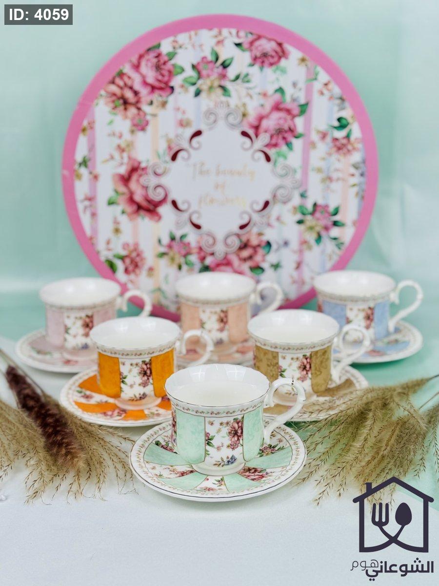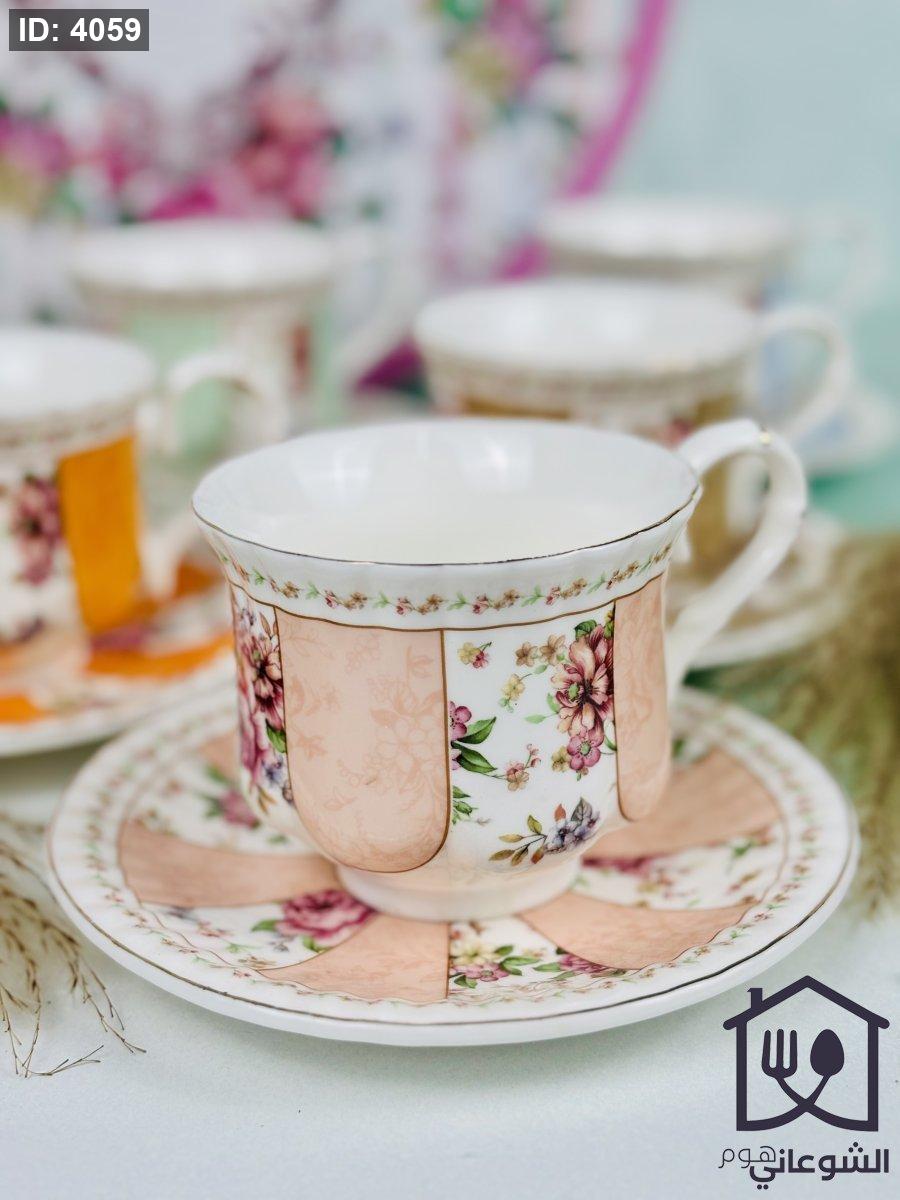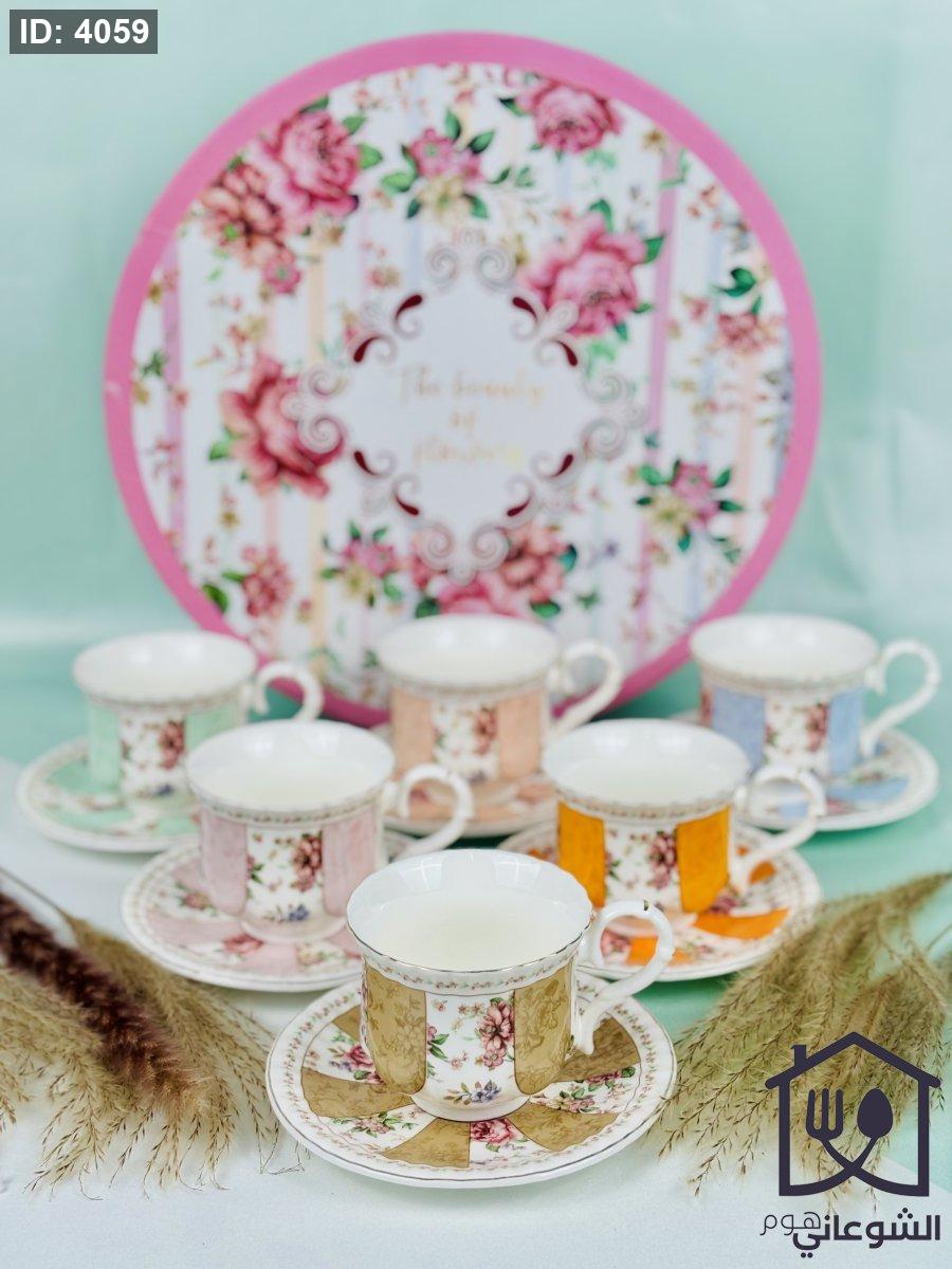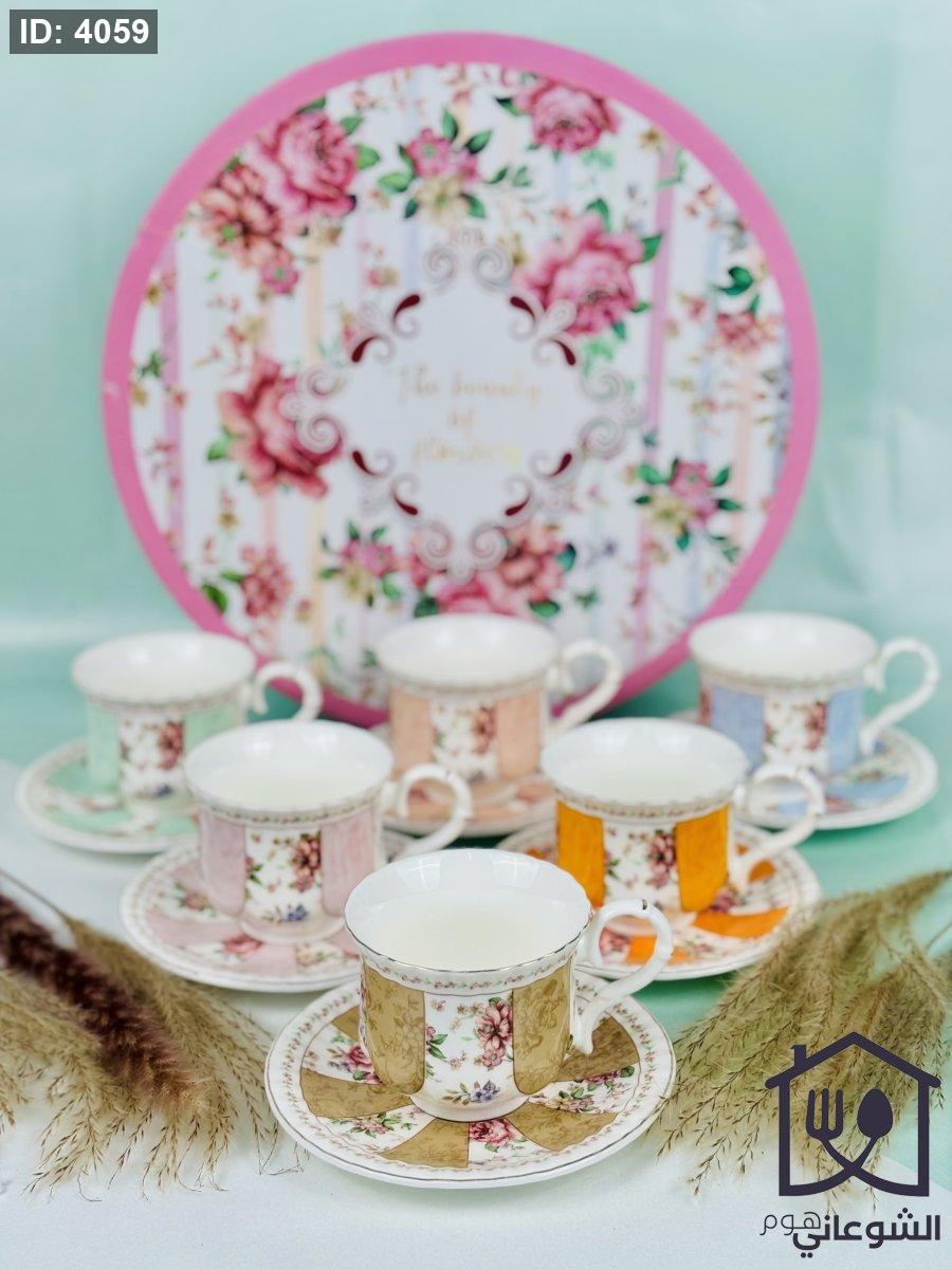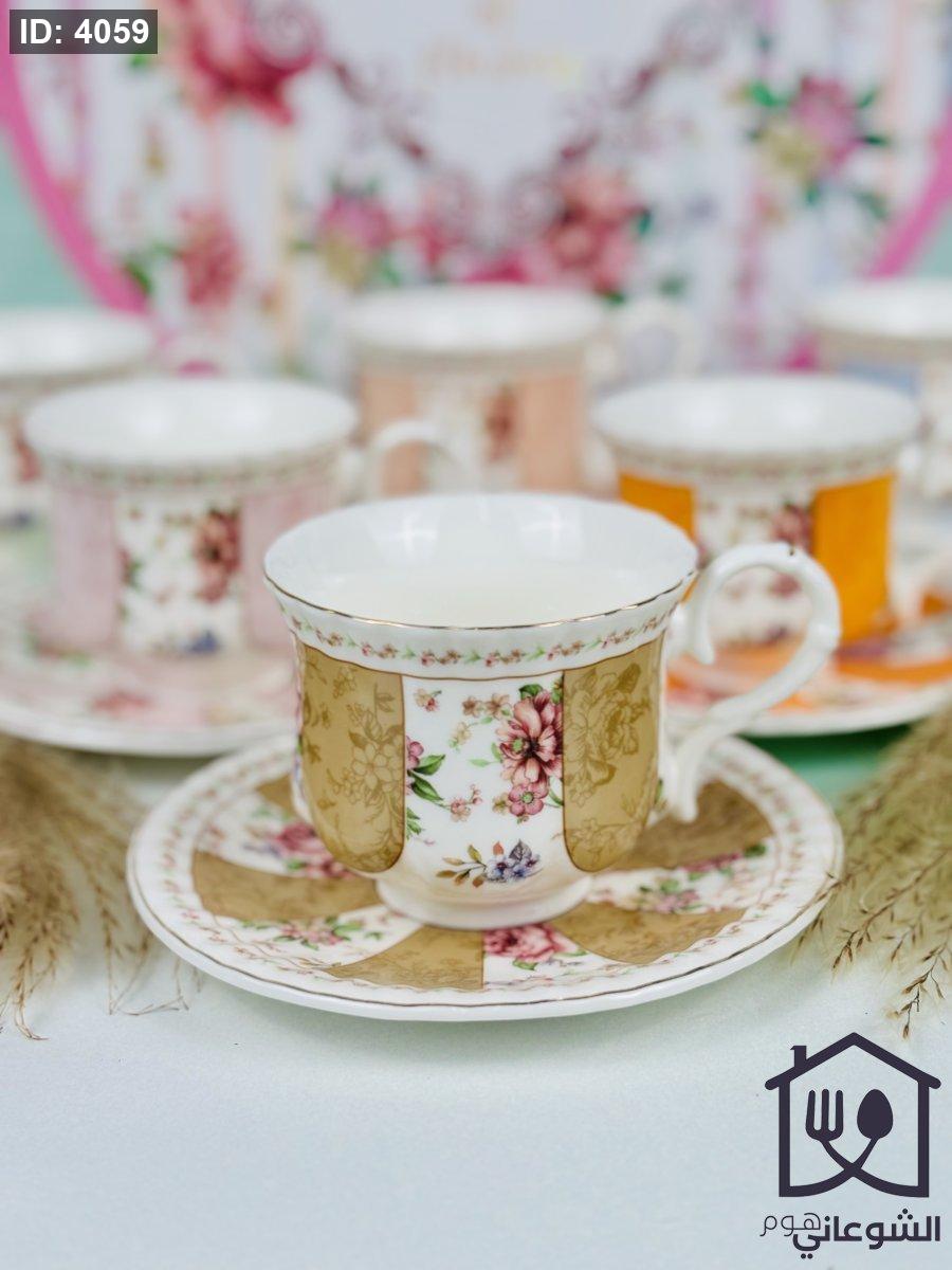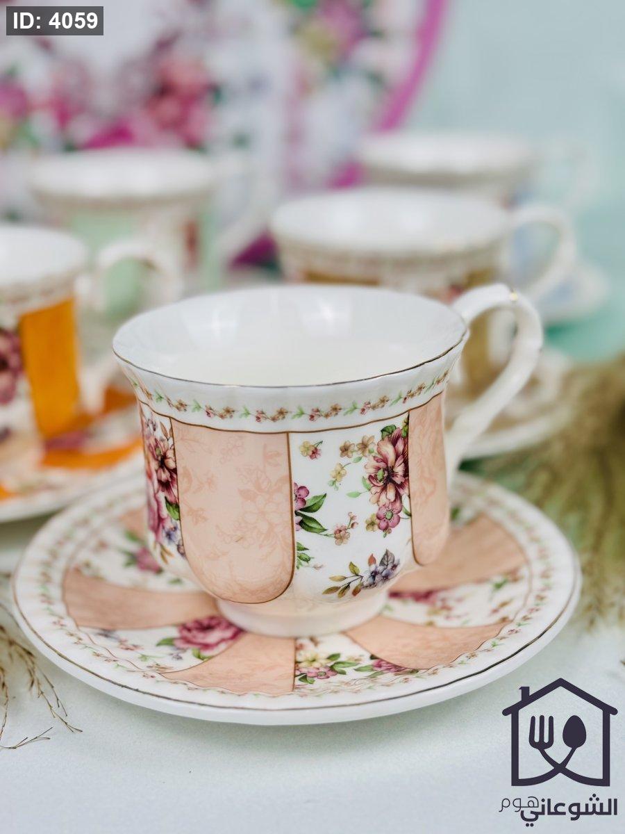 مج بورسلان مذهب مورد عدة ألوان كبير مع صحن