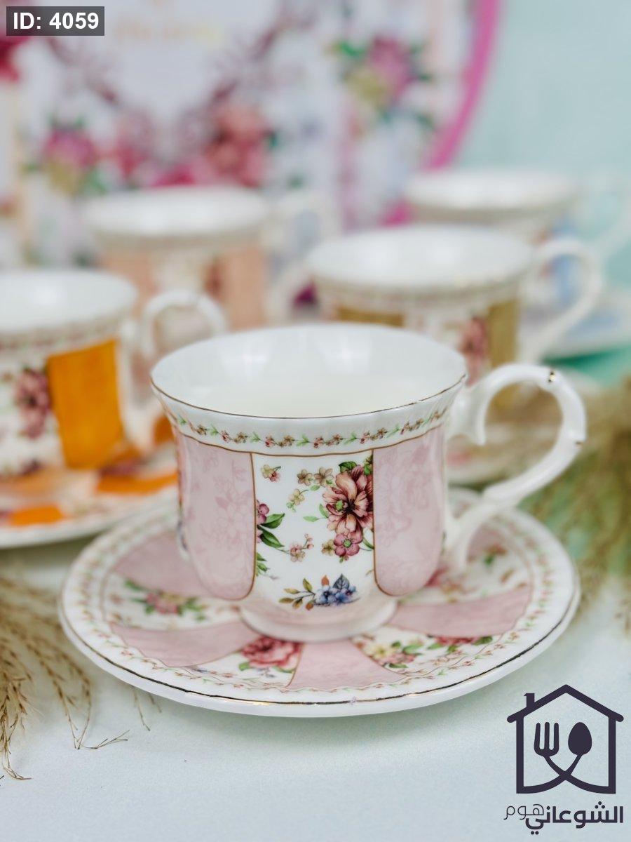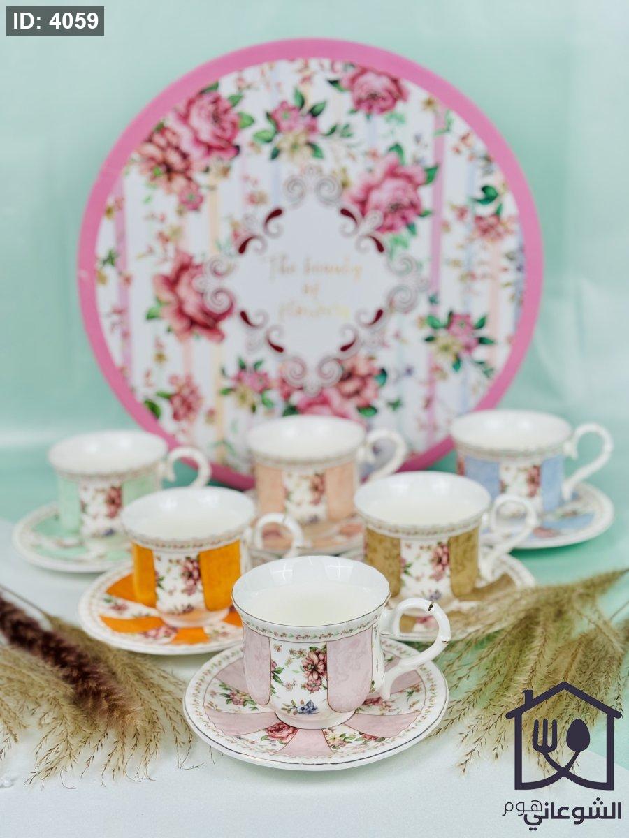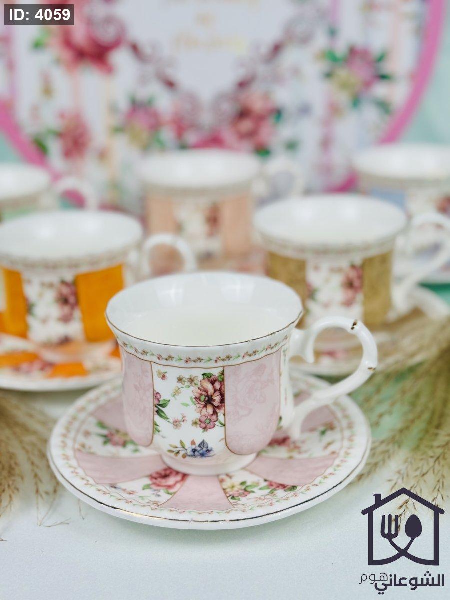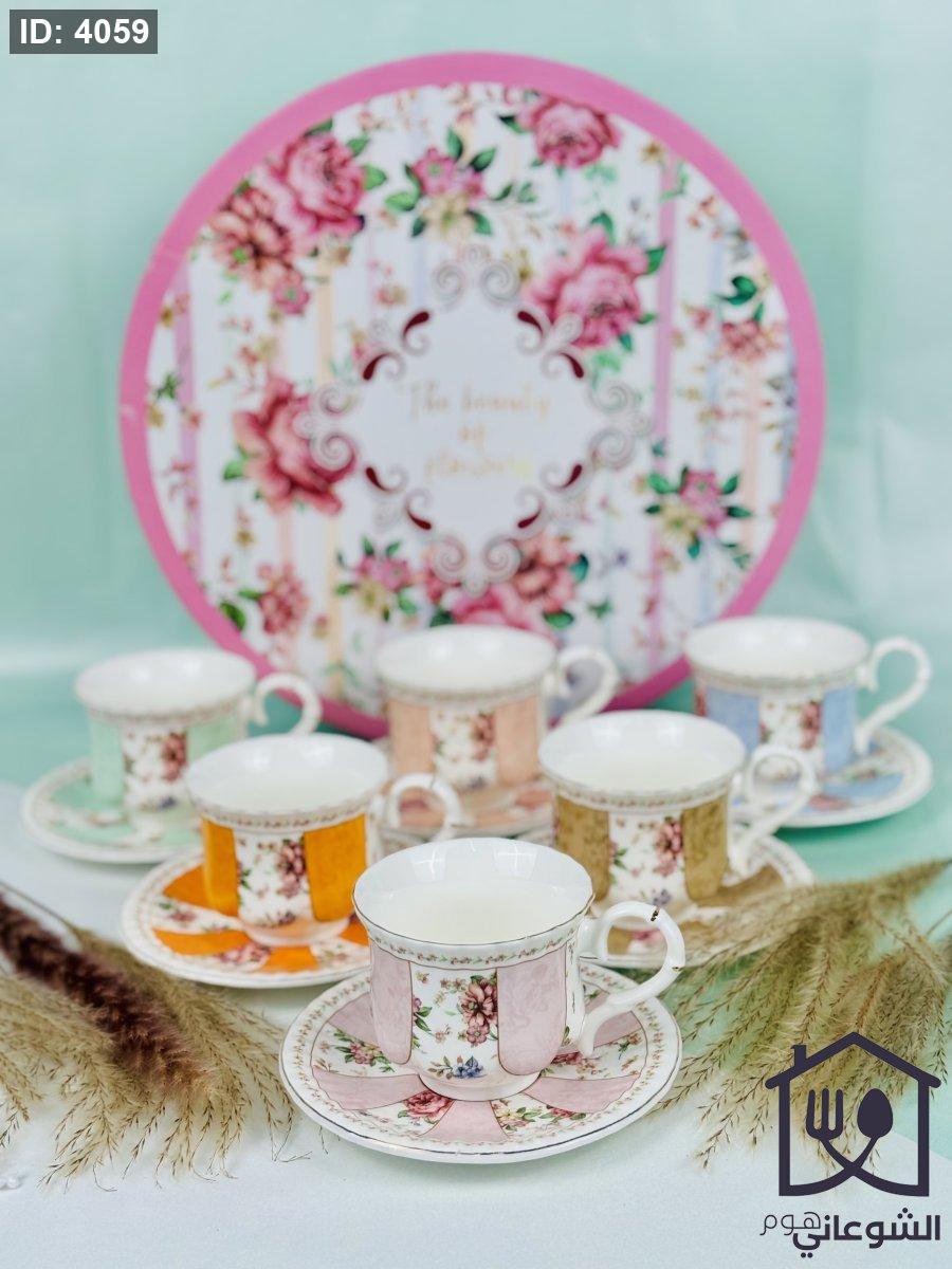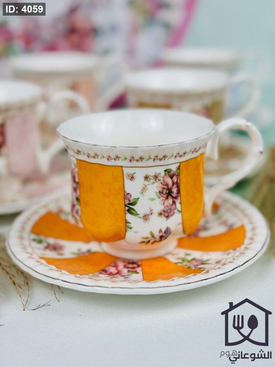 مج بورسلان مذهب مورد عدة ألوان كبير مع صحن