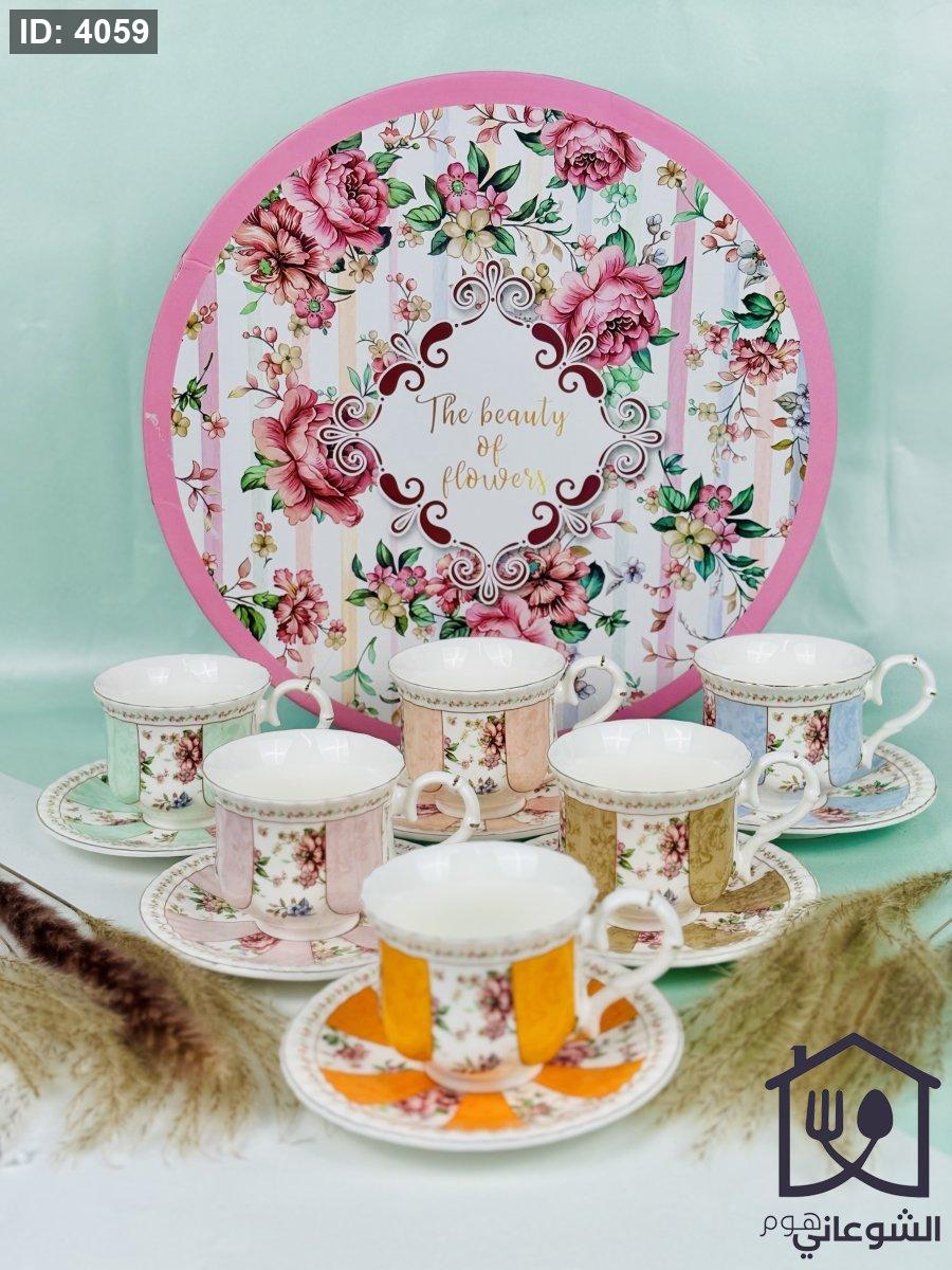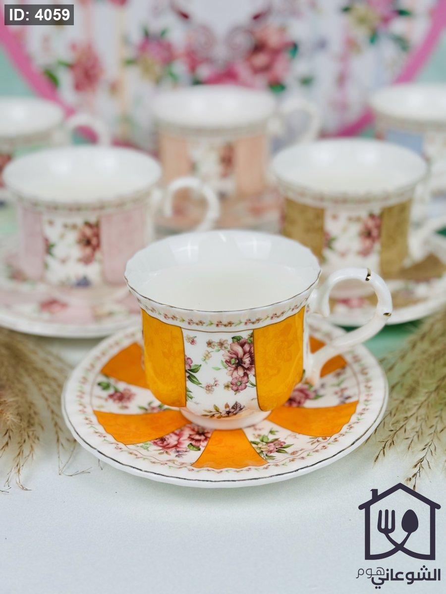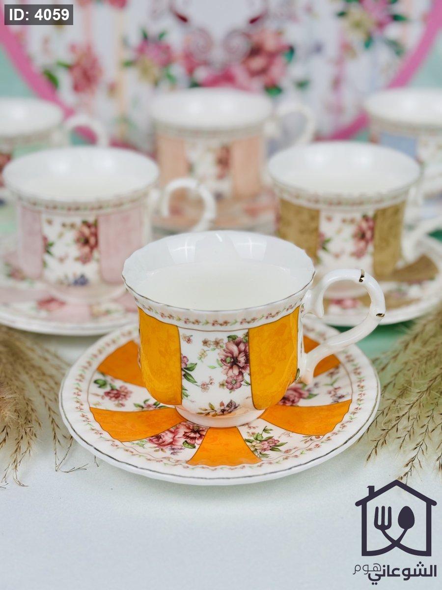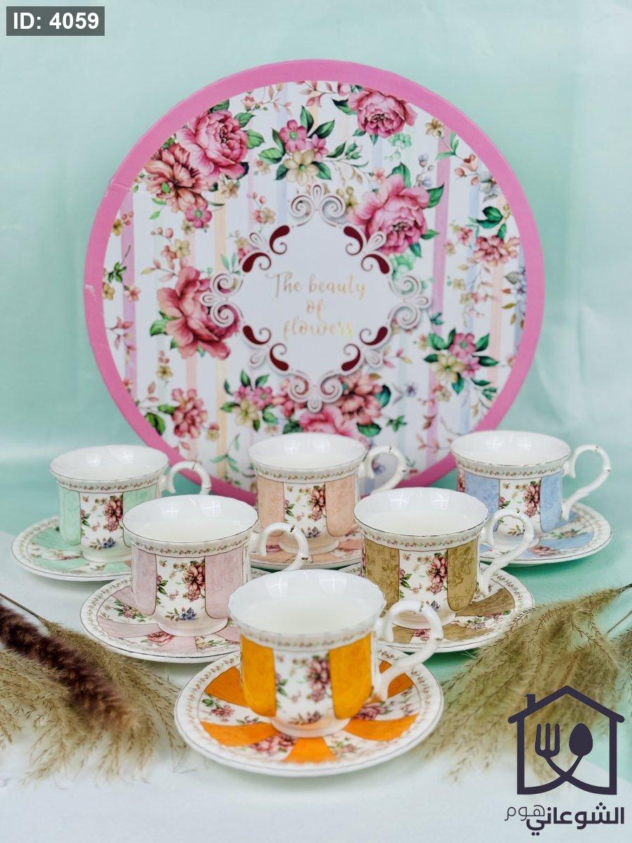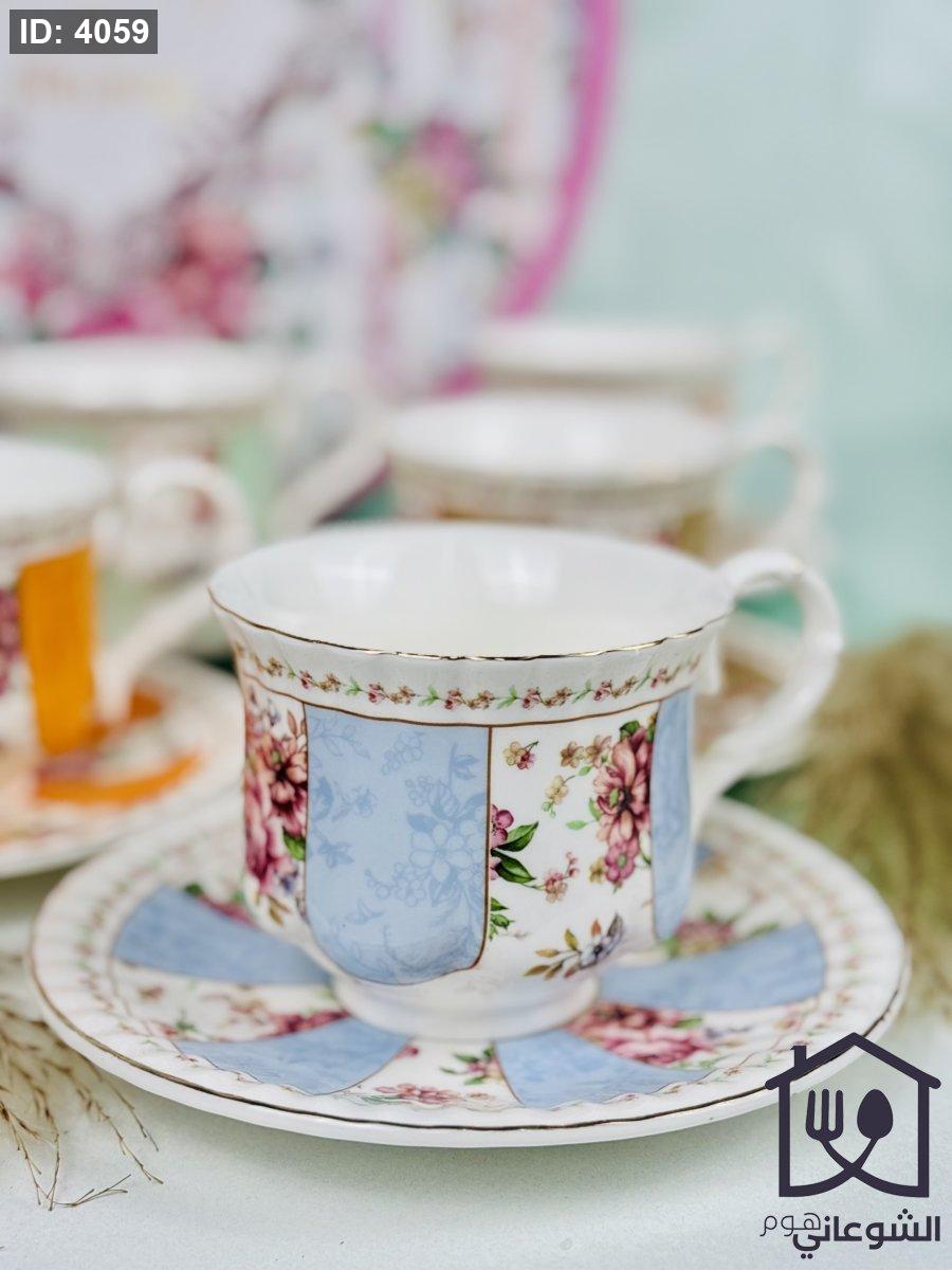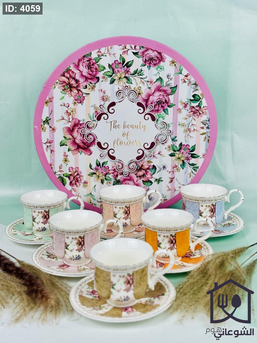 مج بورسلان مذهب مورد عدة ألوان كبير مع صحن
